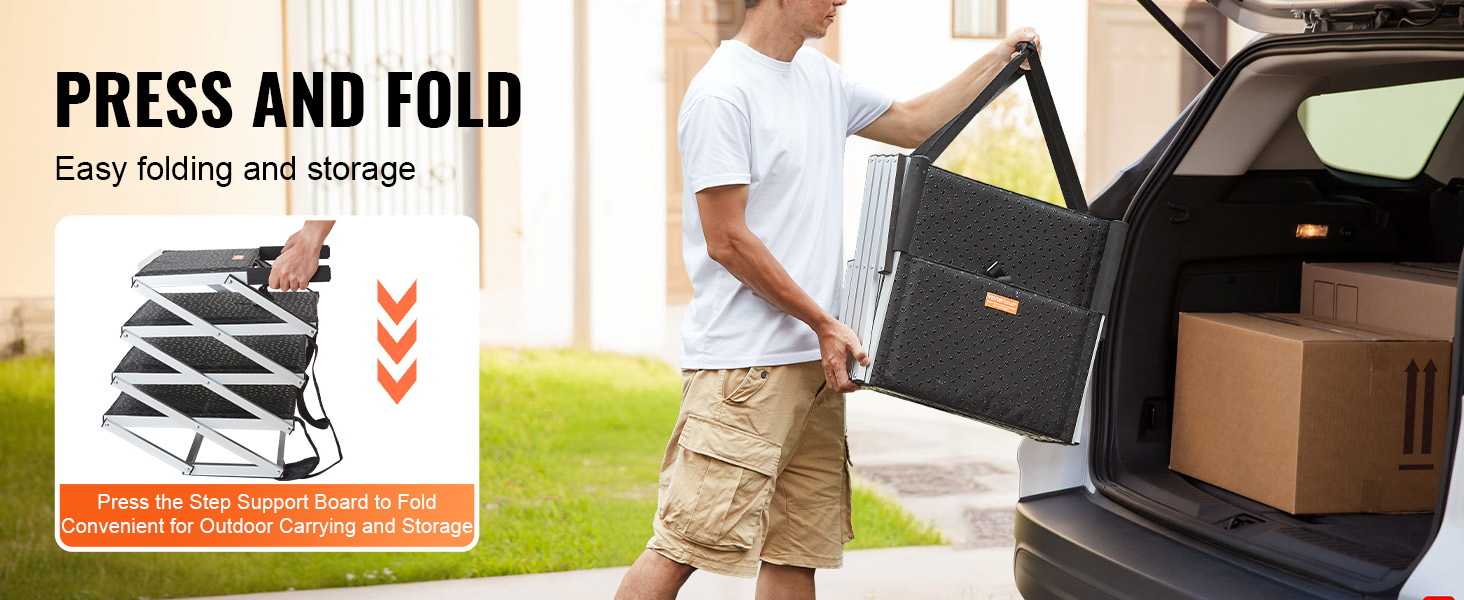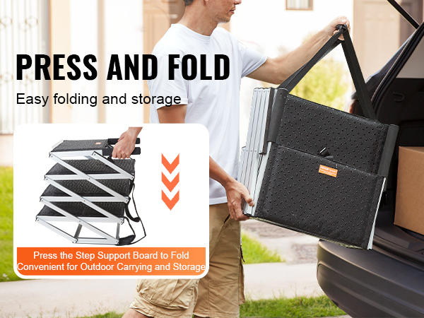 Lightweight and portable, the portable dog step can be easily folded and stored away.