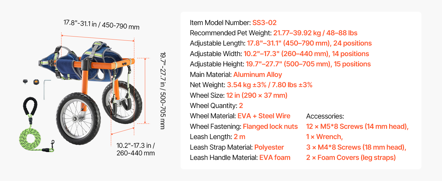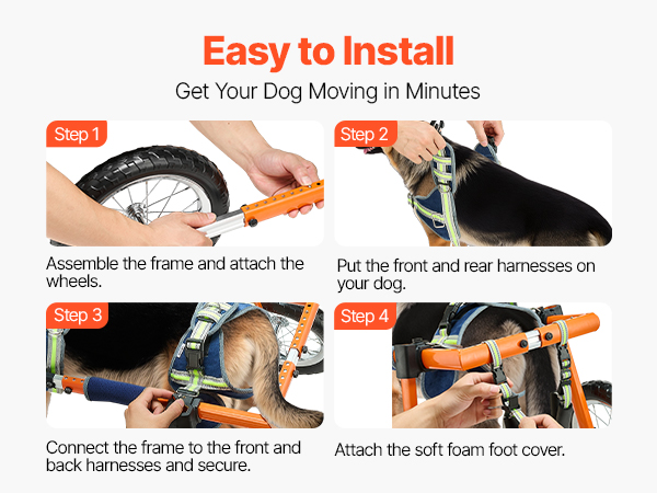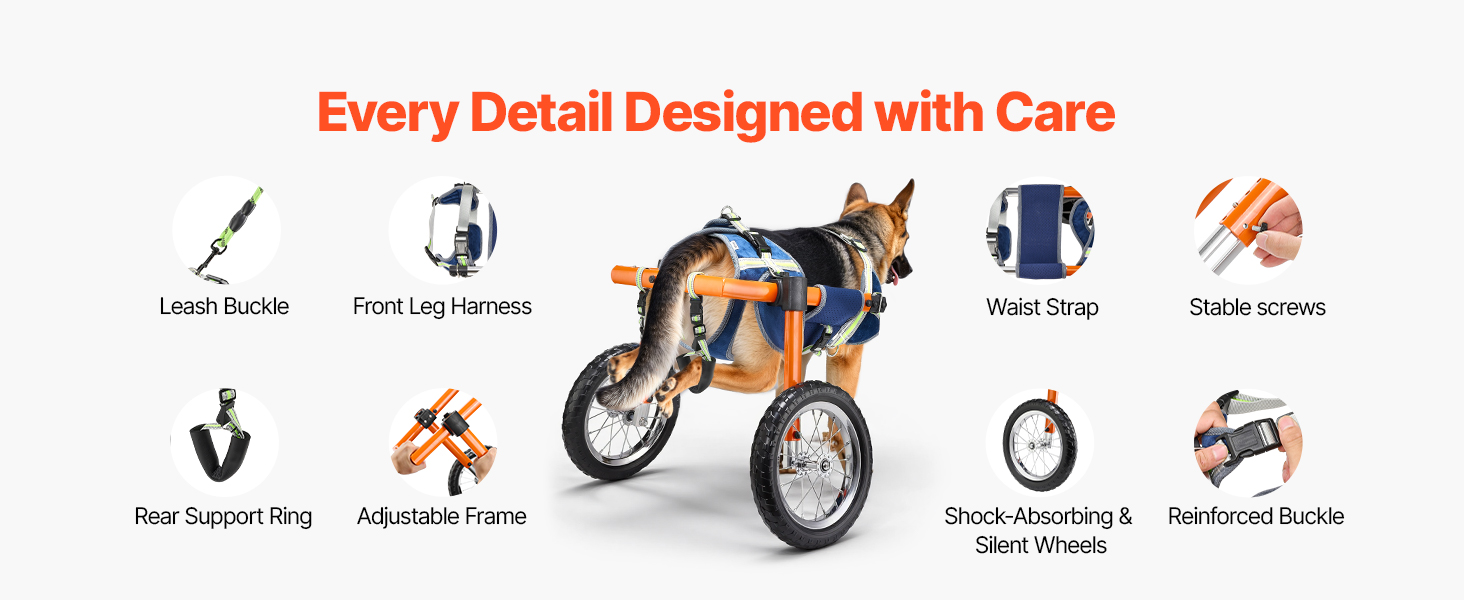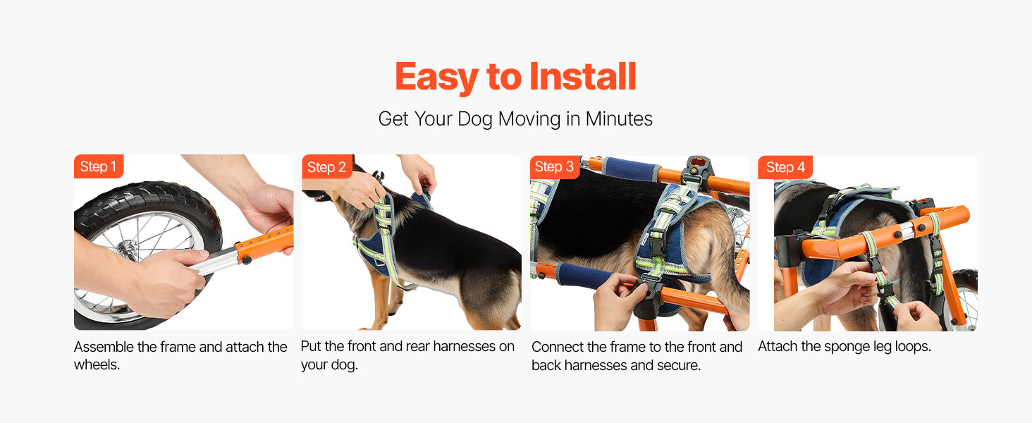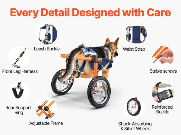 - Quick Setup, Beginner-Friendly: Spring buckles and simple screw adjustments allow you to assemble dog walker wheelchair in minutes. Once installed, it stays secure without frequent readjustment. Includes a 2 m leash for hassle-free outdoor use.