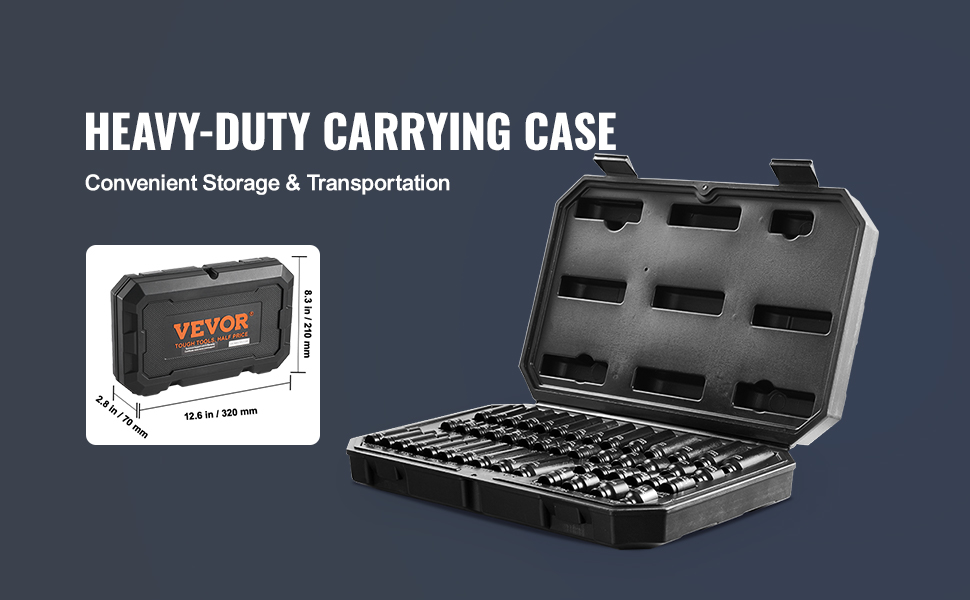 Are you looking for a professional and portable set of impact sockets? VEVOR’s 48-piece impact socket set offers a complete range of tools, especially suitable for repairing different brands of automobiles.