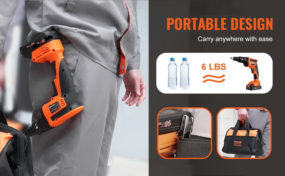 - Easy to Carry: Store the drywall screwgun in the tool bag for easy transport to any job site. You can also use the belt clip to hang the tool on your waist, freeing up your hands for easier completion of other tasks.