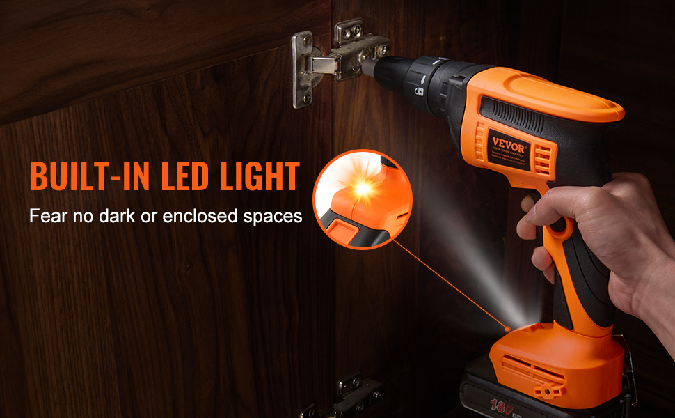 - Built-in LED Light: In dim working environments, you can turn on the sheetrock screw gun's LED light to illuminate the workspace, aiding in more precise screw positioning and providing unparalleled operational comfort and safety.