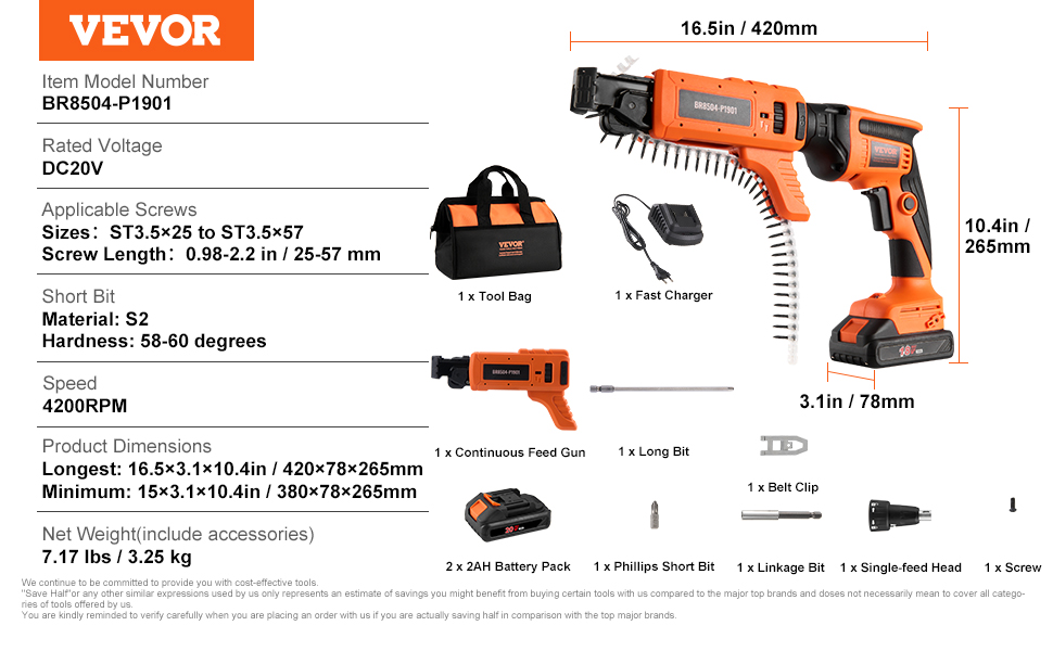 For the money a great tool. Read all instructions to set it up correctly, espcially the millimer leangth of your screws. Because the tolerances are close as you first use it check to make sure the the cartrige comes all the way out. I had to pop it out a tiny bit for the first 1000 screws or so. It was great for a home project. We hung 40 4×12′ sheets and about 5000 screws still working well