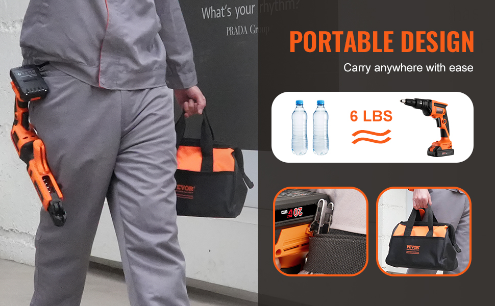 - Easy to Carry: Store the drywall screwgun in the tool bag for easy transport to any job site. You can also use the belt clip to hang the tool on your waist, freeing up your hands for easier completion of other tasks.