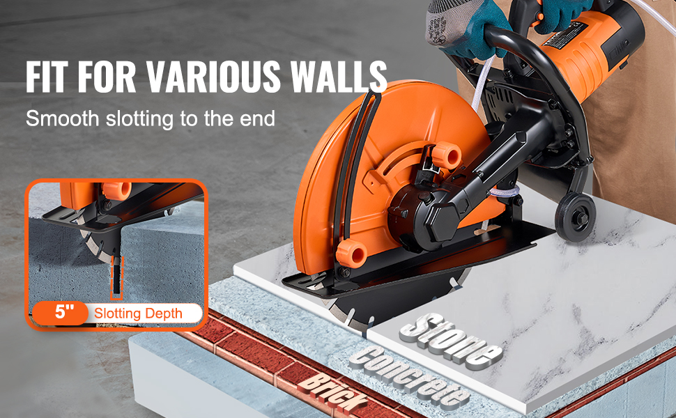 - Cut Through Anything: Our concrete cutter saw features a cutting depth of 5 inches, making it suitable for cutting through various concrete materials such as stones, reinforced concrete, pavings, and bricks.