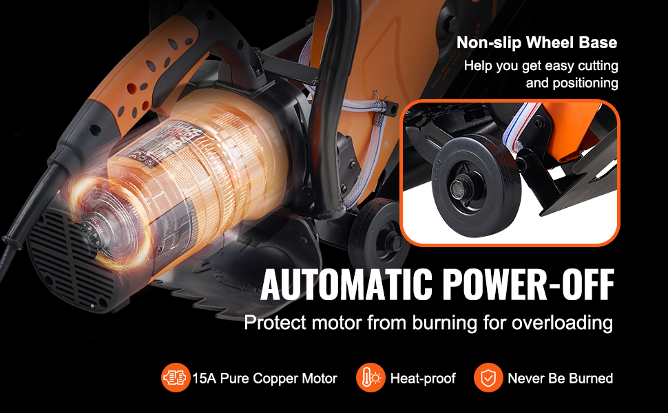 Our electric cement saw has a safety feature that prevents the motor from overheated due to excessive power. The pure copper motor can withstand high temperatures, ensuring a longer service life.