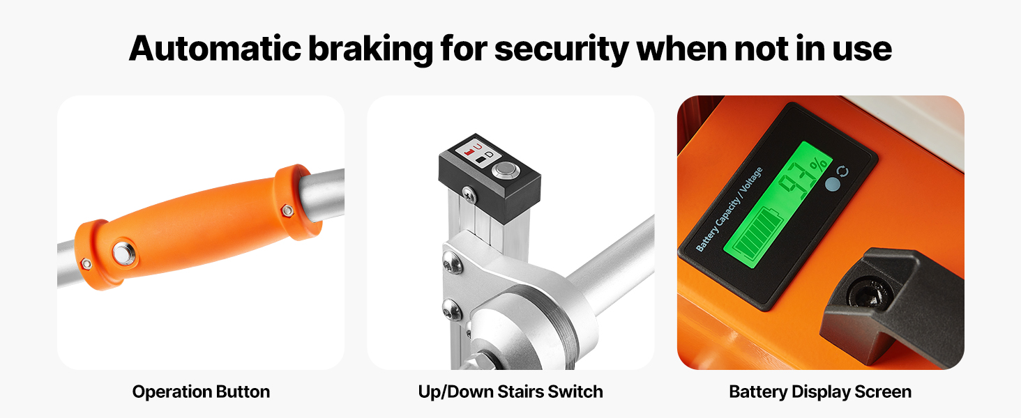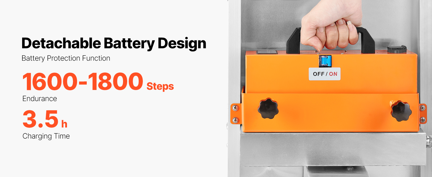 - Powerful & Long-Lasting: This electric stair climber features a 400W brushless motor for efficient, quiet performance. The detachable rechargeable battery supports climbing 1,600-1,800 steps on a full charge (300 lbs load at a 30° incline). An independent switch and battery indicator keep charging simple, while automatic edge braking ensures security.