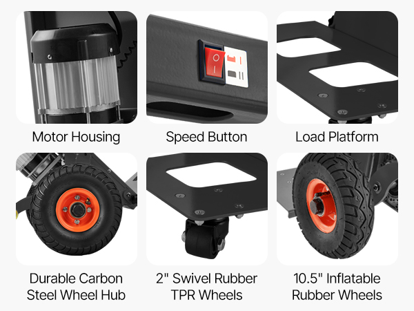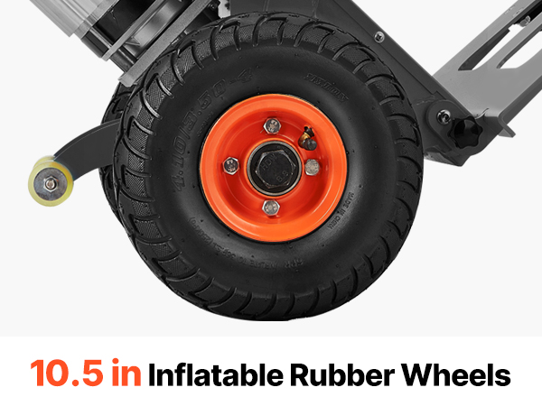 - Versatile for Different Surfaces: This electric hand truck is equipped with two 3in anti-slip inflatable wheels and two 2in swivel casters, making it easy to use on all surfaces. Ideal for transporting building materials, office supplies, appliances, industrial equipment, logistics, and beverage packaging.