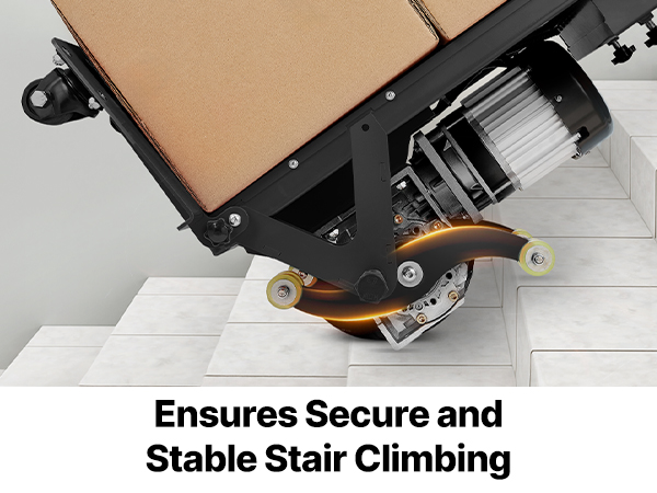 - Powerful & Long-Lasting: This electric stair climbing dolly features a 500W (max 1000W) brushless motor, providing efficient and low-noise operation. A full charge can climb 1600-1800 steps (with a 300lbs load on a 30° incline). Moving heavy items feels as easy as pushing a vehicle, with effortless direction control.