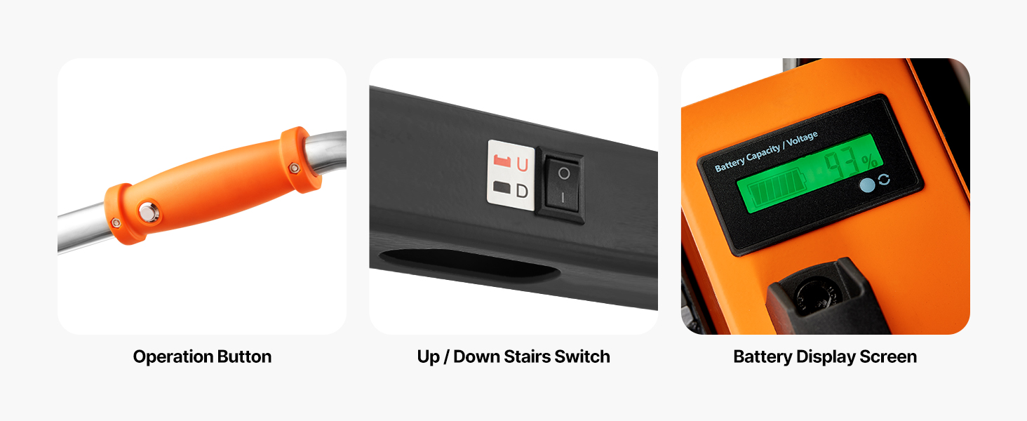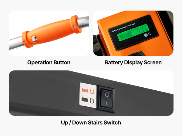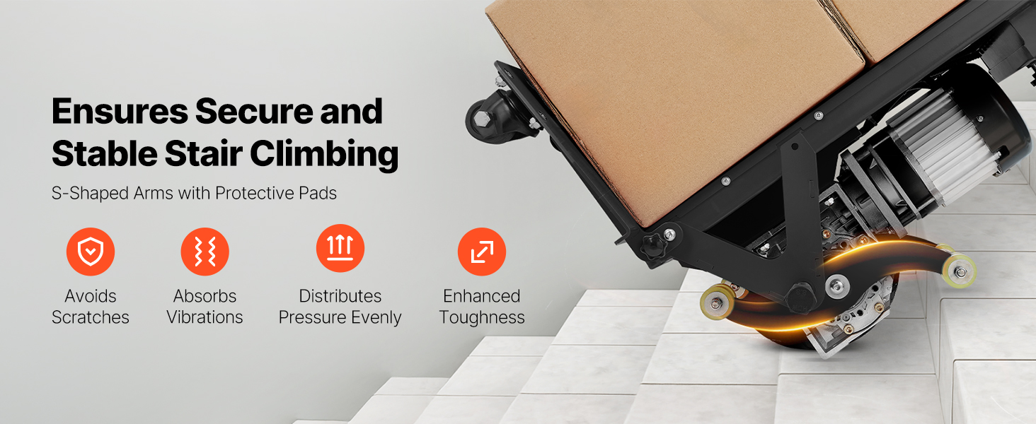 - Built for Long-Term Use: This electric stair climbing weighs 95 lbs, making it easy to store. It features a 4mm thick alloy steel frame, durable and deformation-resistant. The paint-grade storage platform is wear-resistant with strong load capacity. The S-shaped support arm is reinforced for stability and speed, with a ground protection design to avoid damage to stair surfaces. CE certified, ensuring reliable quality.