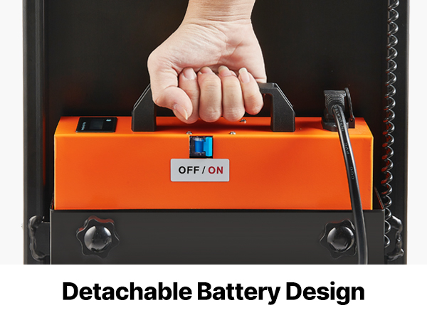 - Easy to Operate: Simply connect the battery and press the power button to start. It has speed control, up/down buttons, and a battery display for easy use and security. The handle height adjusts (48-60.2in) to fit your needs. Available in orange, black, green, and blue to brighten your work mood.