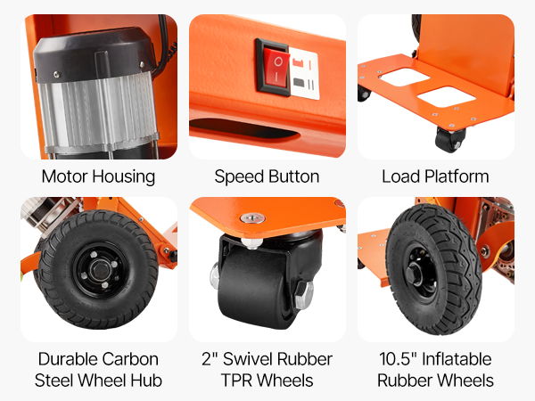 - Versatile for Different Surfaces: This electric hand truck is equipped with two 3in anti-slip inflatable wheels and two 2in swivel casters, making it easy to use on all surfaces. Ideal for transporting building materials, office supplies, appliances, industrial equipment, logistics, and beverage packaging.