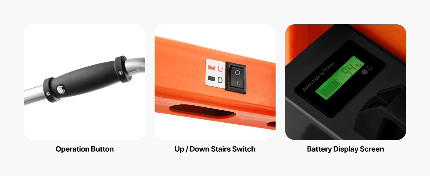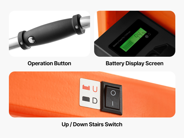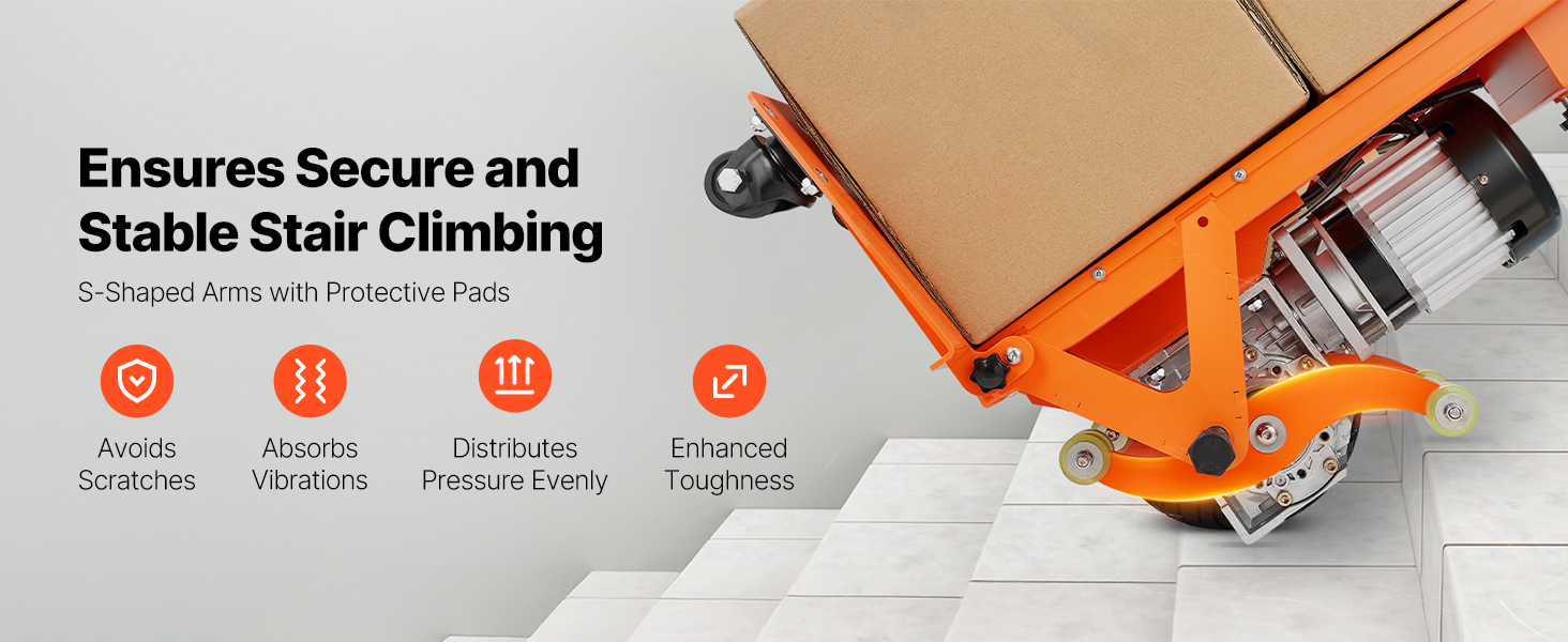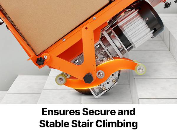 - Built for Long-Term Use: This electric stair climbing weighs 95 lbs, making it easy to store. It features a 4mm thick alloy steel frame, durable and deformation-resistant. The paint-grade storage platform is wear-resistant with strong load capacity. The S-shaped support arm is reinforced for stability and speed, with a ground protection design to avoid damage to stair surfaces. CE certified, ensuring reliable quality.