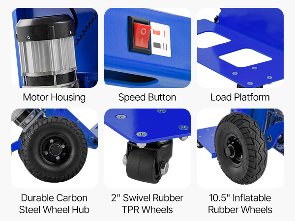 - Versatile for Different Surfaces: This electric hand truck is equipped with two 3in anti-slip inflatable wheels and two 2in swivel casters, making it easy to use on all surfaces. Ideal for transporting building materials, office supplies, appliances, industrial equipment, logistics, and beverage packaging.
