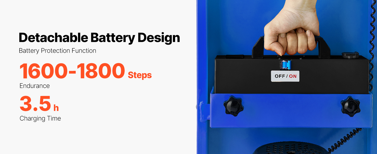 - Easy to Operate: Simply connect the battery and press the power button to start. It has speed control, up/down buttons, and a battery display for easy use and security. The handle height adjusts (48-60.2in) to fit your needs. Available in orange, black, green, and blue to brighten your work mood.