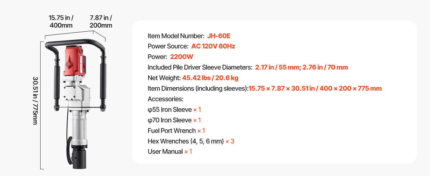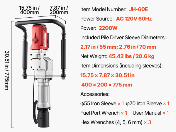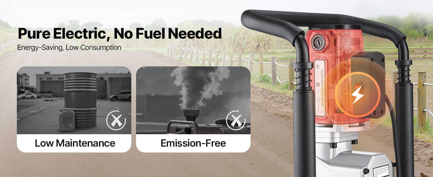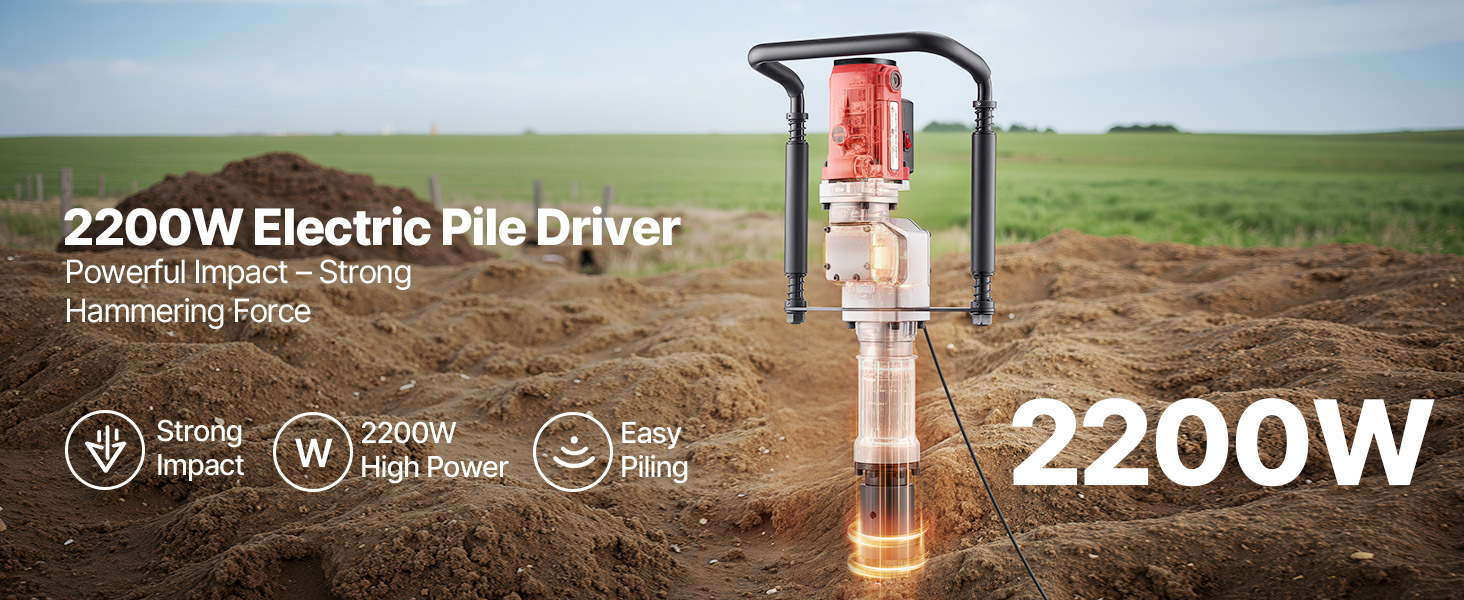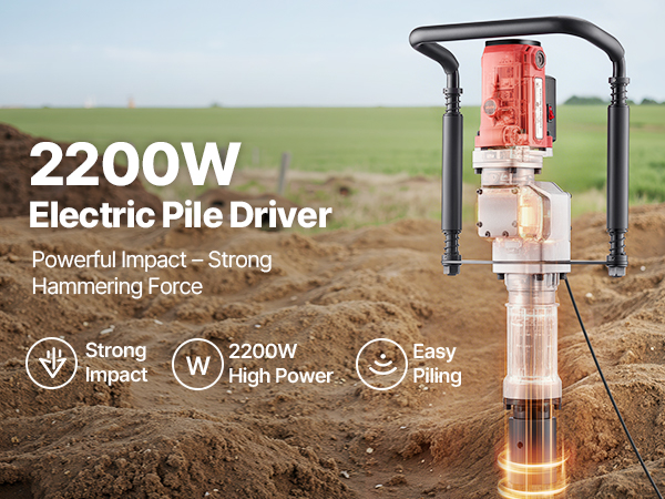 - Fast Piling: This 2200W electric post driver delivers fast piling with high hammering force and an impact frequency of up to 1900 BPM, generating 85J of impact energy. It improves work efficiency, allowing you to quickly complete your piling tasks.