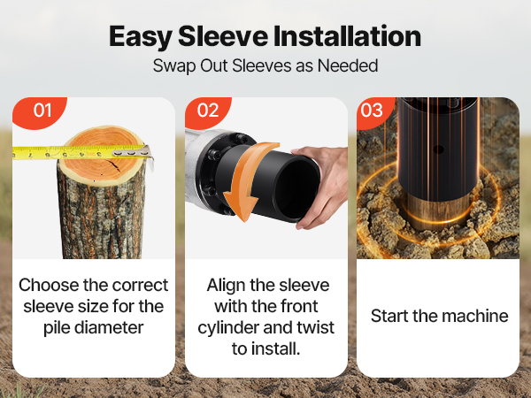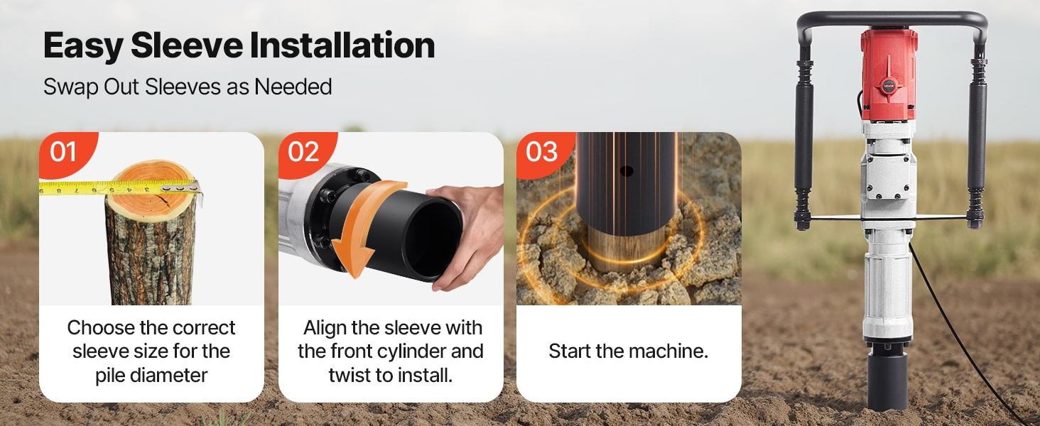 Comes with several interchangeable sleeves to match different post sizes. The high-strength hammer section ensures efficient and smooth piling across a variety of tasks.
