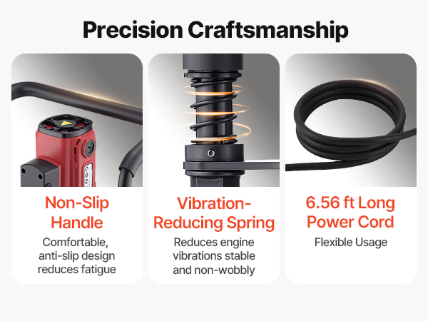 Equipped with a comfortable anti-slip handle that minimizes fatigue. Built-in springs help absorb shock and reduce vibration for stable, controlled operation during extended use.