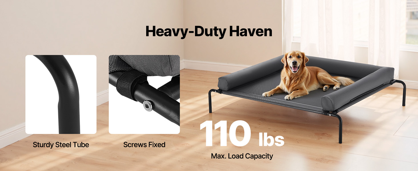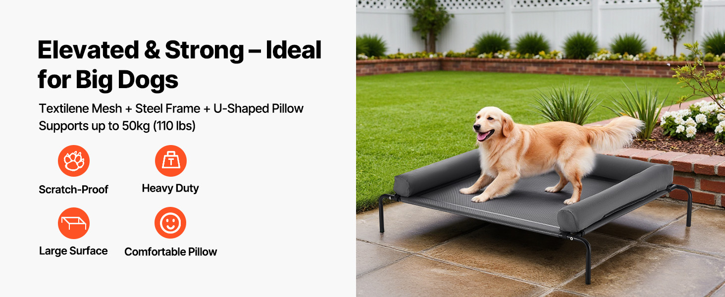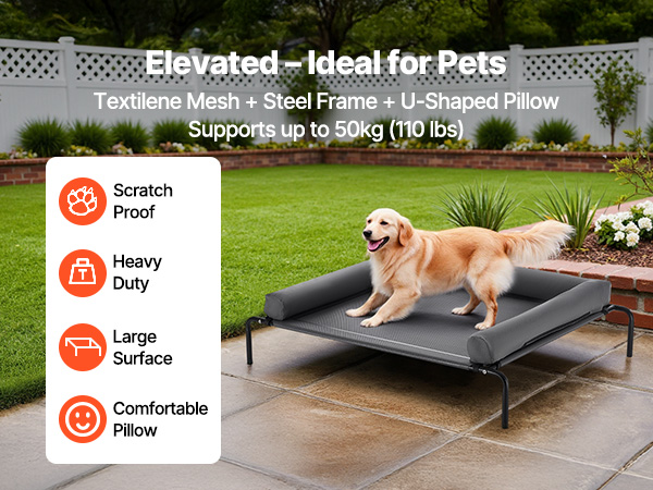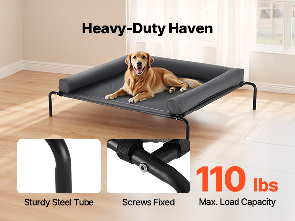- Stable Weight Support: Our raised dog bed securely supports the weight of medium to large dogs, with breeds like Labradors and Goldens (up to 110 lbs / 50kg ) resting comfortably. It can also hold 2-3 medium-sized dogs in multi-pet households (total weight ≤50kg) without wobbling