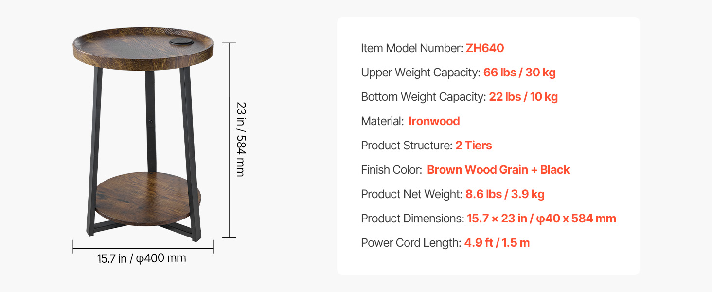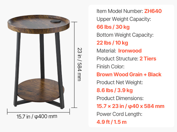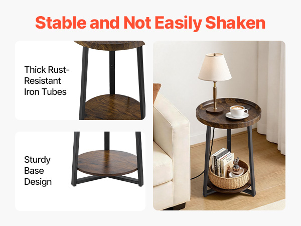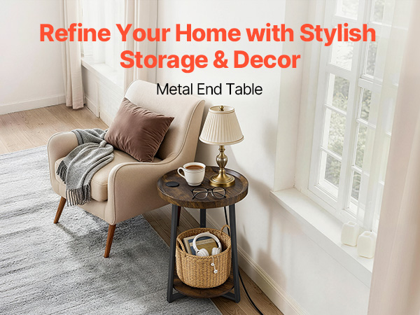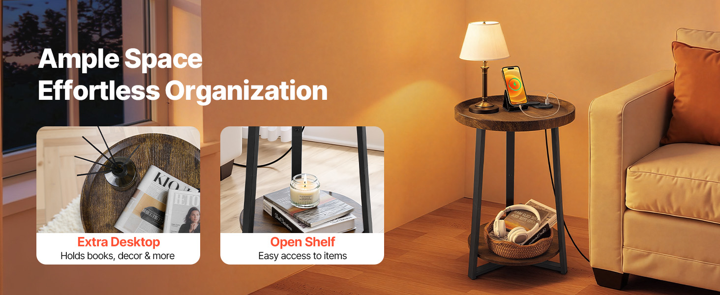 3 reviews for End Table, 2-Tier Round Side Table with Open Storage Shelves, Modern Nightstand Bedside Desk with USB & AC Charging Port, Wood Sofa Coffee Desk for Living Room, Bedroom, Office, Dorm, Brown