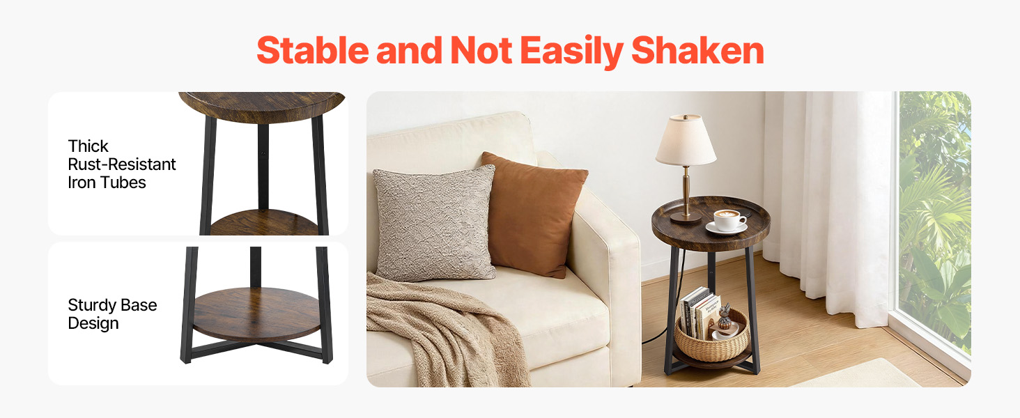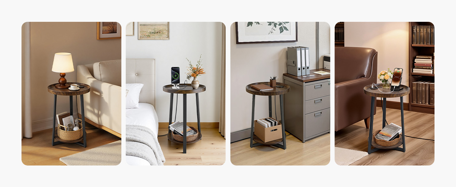With an open storage design, the side table lets you easily store and access everyday items. Keep books, cups, snacks, chargers, and tissue boxes neatly organized, helping your home stay tidy and clutter-free.