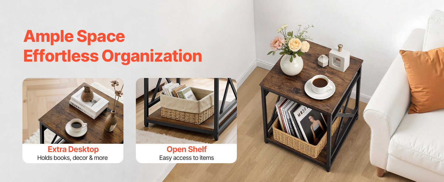 With an open storage design, the side table lets you easily store and access everyday items. Keep books, cups, snacks, chargers, and tissue boxes neatly organized, helping your home stay tidy and clutter-free.