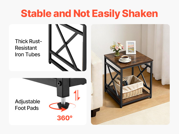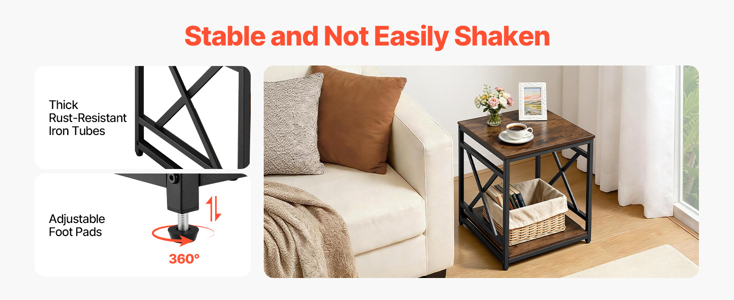 - Spacious Storage: With an open-shelf design, the metal end table offers easy access to items on the tabletop, such as phones, tablets, or coffee, while lower shelves store books, glasses, snacks, or tissues. It helps keep your home organized and clutter-free.