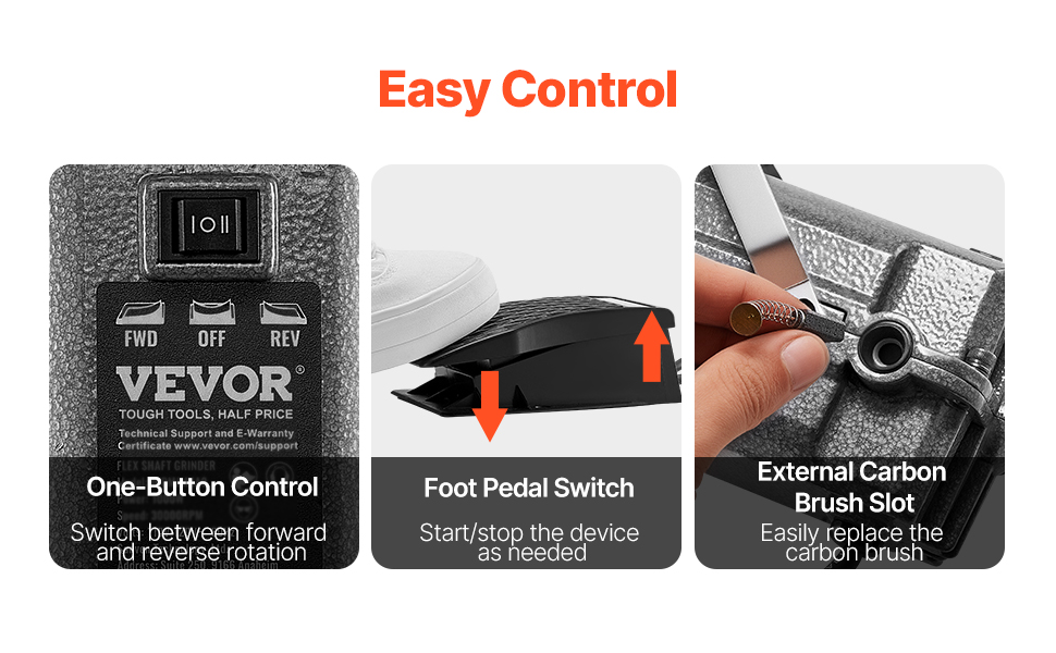 - Enhanced Durability: Made with ABS + PC material, the foot pedal switch prevents overheating and electrical leakage, ensuring safe operation. The aluminum alloy handle and stainless steel flexible shaft provide superior strength, offering excellent durability for extended use.