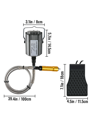 - Stepless Speed Foot Pedal: The ABS plastic foot pedal for the flex shaft hanging grinder is more secure than ordinary materials. It blocks rapid heat production and transfers. In addition, there is a screw on the pedal that can be used to adjust the constant speed and rotating speed.