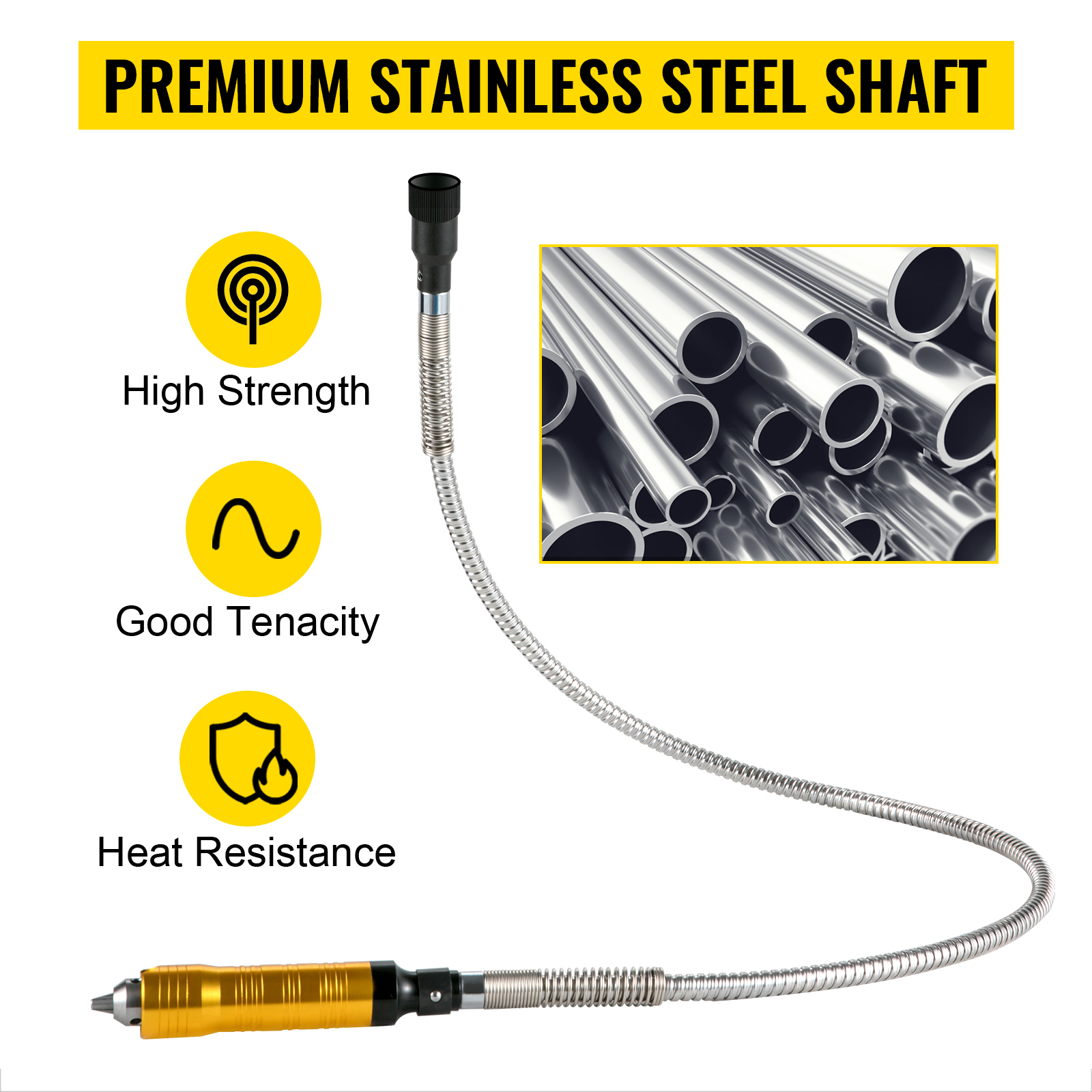 - High Precision Flex Shaft: The flex shaft rotary tool has a high precision 3-jaw chuck for higher compatibility and strong clamping force. What’s more, the 100 cm stainless steel flexible shaft features good extensibility for precise connections.