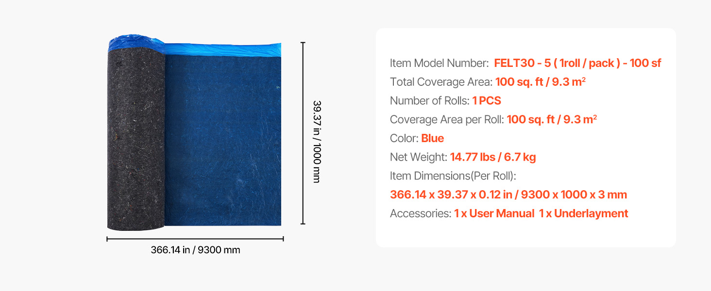 | Item Model Number | FELT30-5(1roll/pack)-100sf |