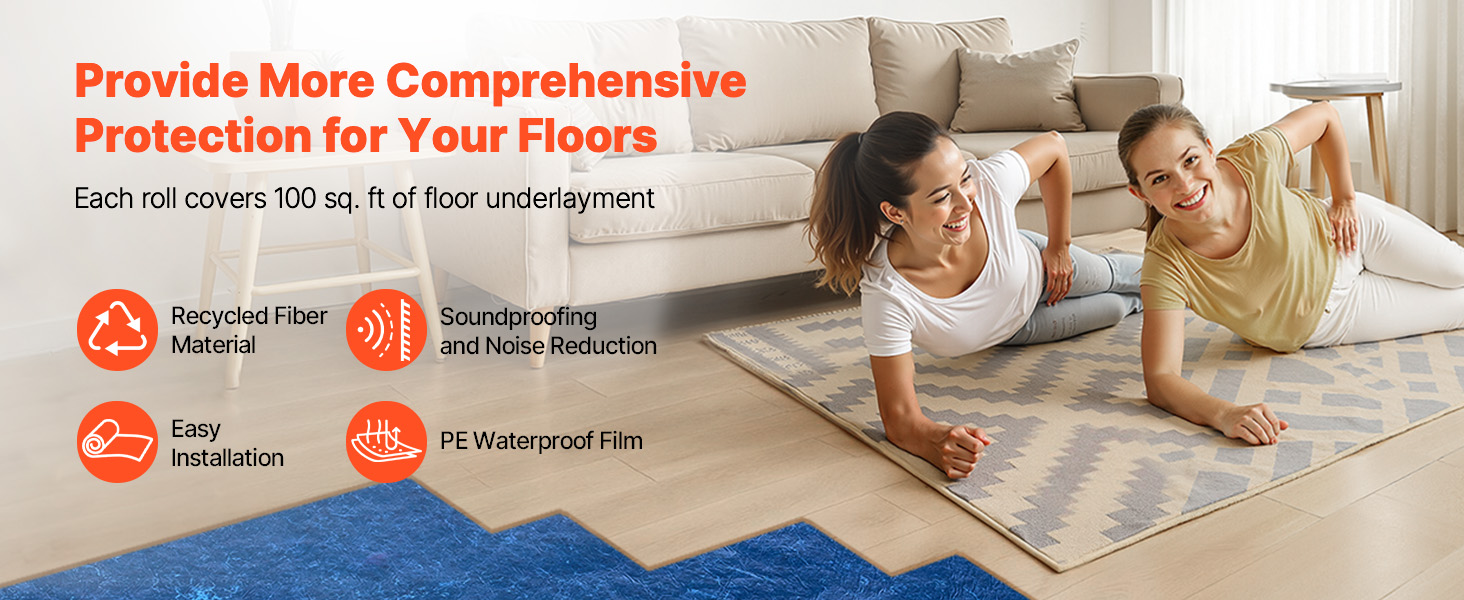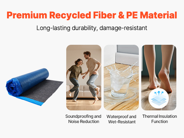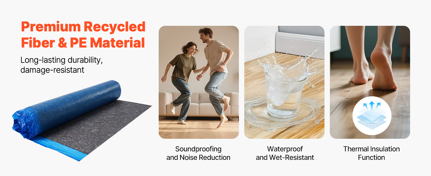 - Soundproofing & Noise Reduction: Constructed with high-quality recycled fiber, the underlayment delivers superior soundproofing. It minimizes common hollow sounds from floating floors and dampens footsteps and furniture movement, creating a comfortable living space.