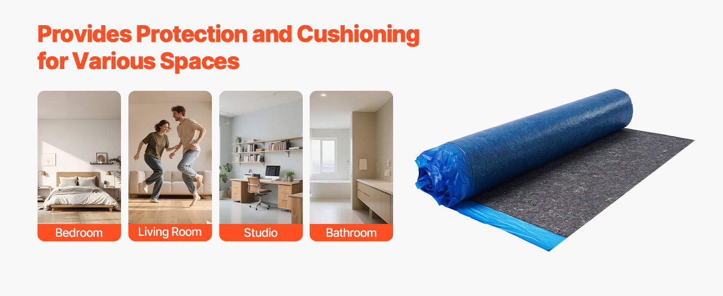 Suitable for use in various rooms such as living rooms, bedrooms, studios, and bathrooms, this underlayment provides superior protection and cushioning, ensuring floors stay in optimal condition in any condition.