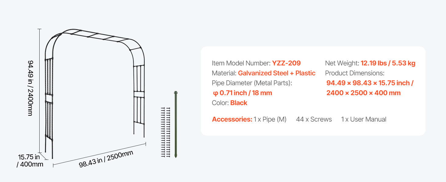 Our trellis arch comes with all the necessary parts and installation instructions for quick setup. No gardening experience required. No extra tools required for assemble, saving time and effort while creating your custom garden landscape.