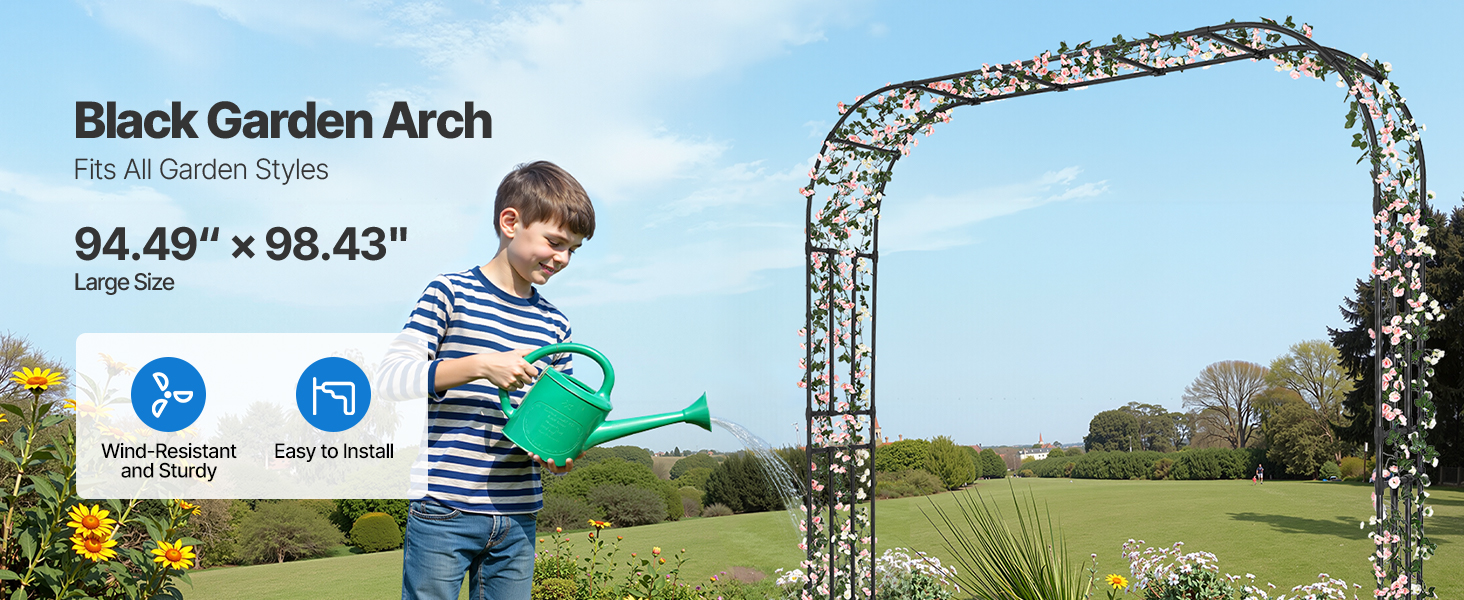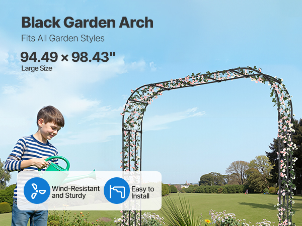 - Elegant Garden Arch: This garden arbor features classic black arch design that adds beauty and charm to any garden, yard, or outdoor space. It enhances the atmosphere, bringing a romantic and stylish touch to your outdoor environment