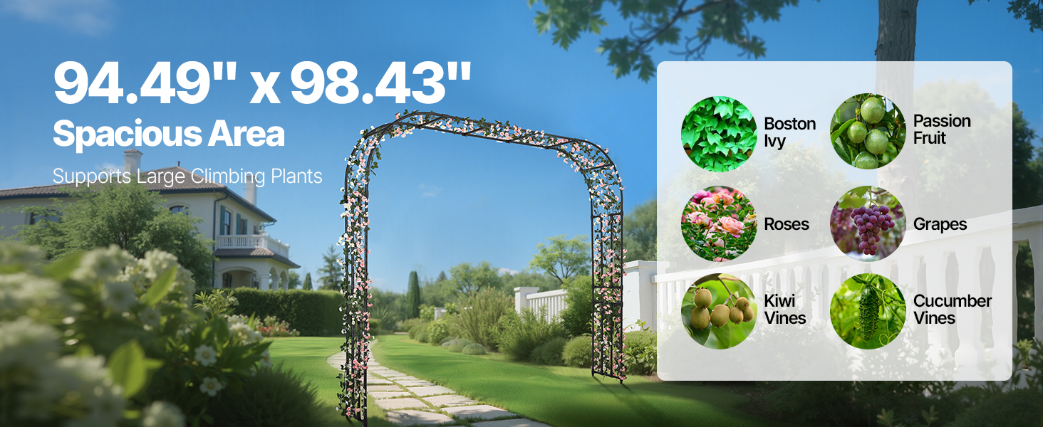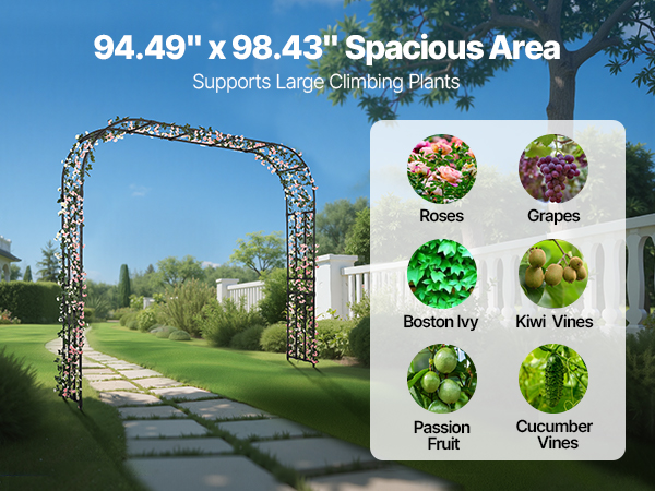- Maximized Vertical Space: Measuring 94.49 x 98.43 inches, this garden trellis arch offers plenty of room for climbing plants like roses, clematis, and morning glories, creating a stunning vertical green landscape