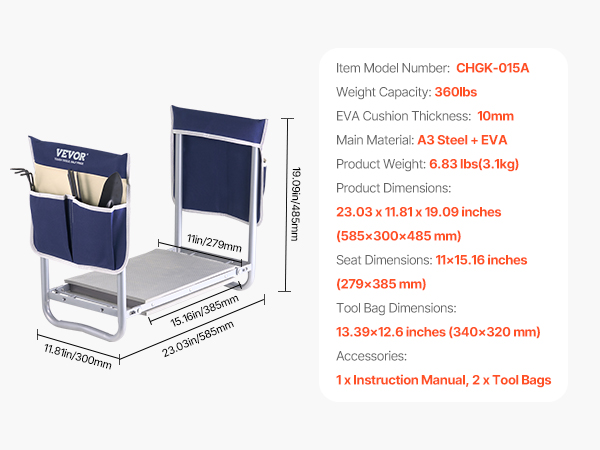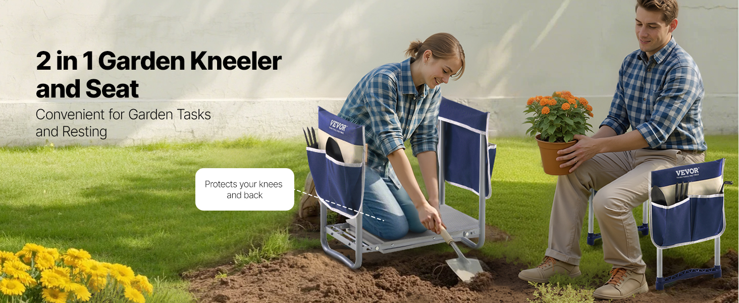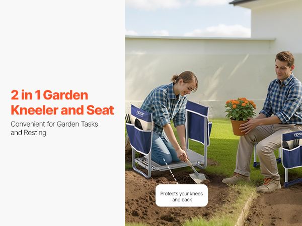 • Dual Tool Bags for Organization: The garden bench for kneeling and sitting features two durable 600D Oxford fabric tool bags that keep gardening essentials like scissors, gloves, and small trowels within easy reach. No need to constantly get up to find tools—this feature enhances efficiency and allows for a more productive gardening experience.