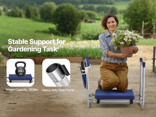 • Supports Up to 360 lbs: Crafted with high-strength A3 steel and a powder-coated finish, this garden bench for kneeling and sitting ensures excellent stability and durability. With a weight capacity of 360 lbs, it's suitable for gardening, household chores, or any activity requiring strong support.
