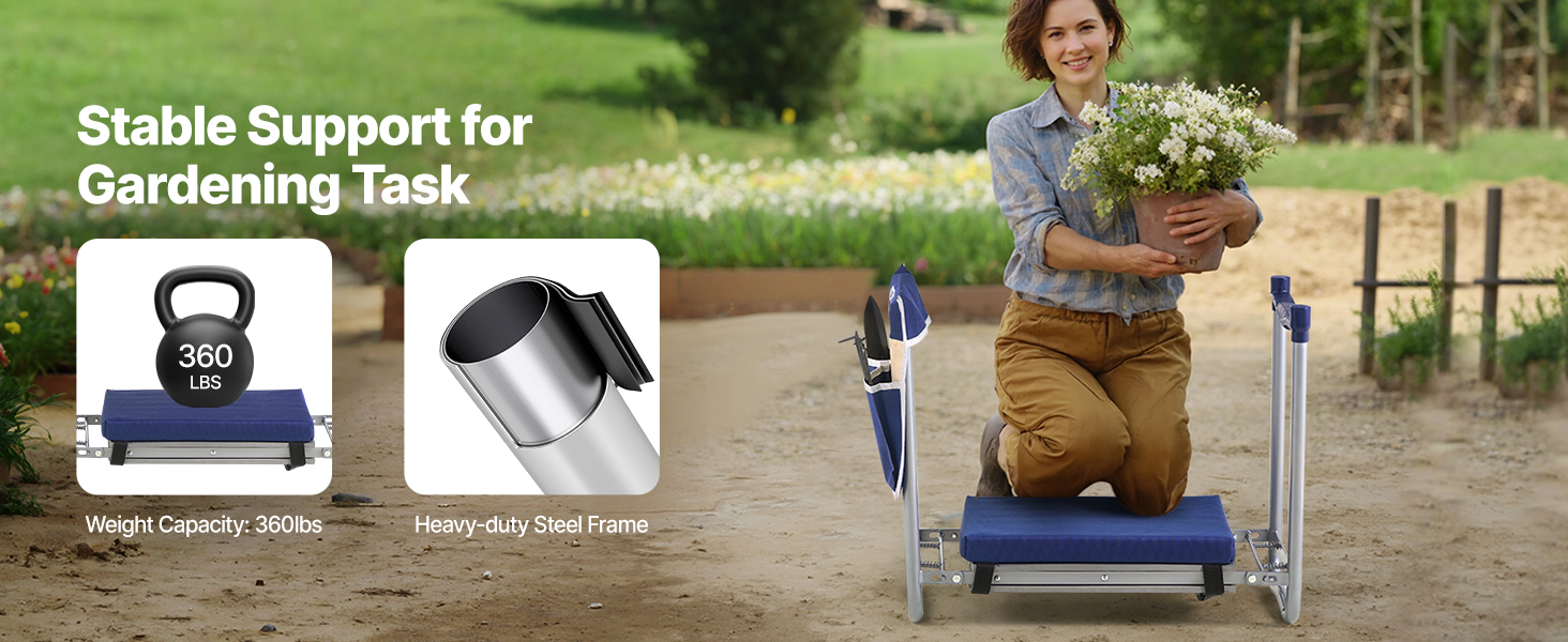 Weighing just 6.83 lbs/3.1 kg, this compact kneeler is easy to carry and takes up minimal space when not in use. Perfect for backyard gardening or camping, it’s always ready to meet your needs wherever you go.