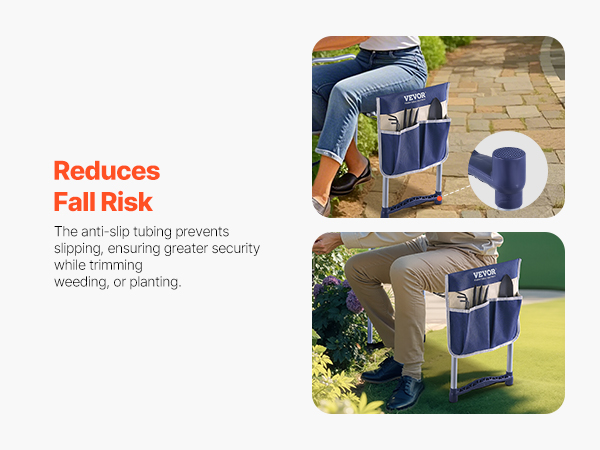 • Easy to Stand Up: The garden kneeling stool features side handles that provide extra support, making it effortless to rise from a kneeling position. Thoughtfully designed for seniors or anyone with limited joint mobility, it helps prevent joint strain and discomfort, allowing gardeners to work more comfortably. The anti-slip tubing at the bottom enhances grip, ensuring security while trimming on both muddy and smooth surfaces.