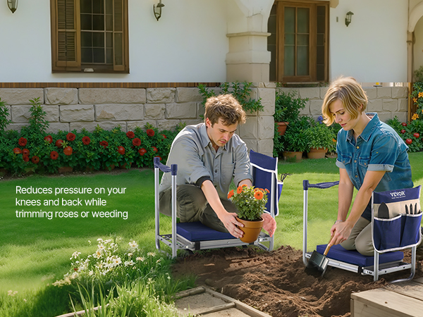 • Knee Joint Fatigue Relief: The 10mm thick EVA foam cushion paired with a 40mm thick kneeling pad helps reduce knee pressure during tasks like weeding and trimming. Easily switch between a comfortable kneeling pad and a sturdy garden seat to protect your knees and back. This garden kneeler is ideal for long gardening sessions, it alleviates fatigue and provides relief during activities like weeding, planting, and pruning.