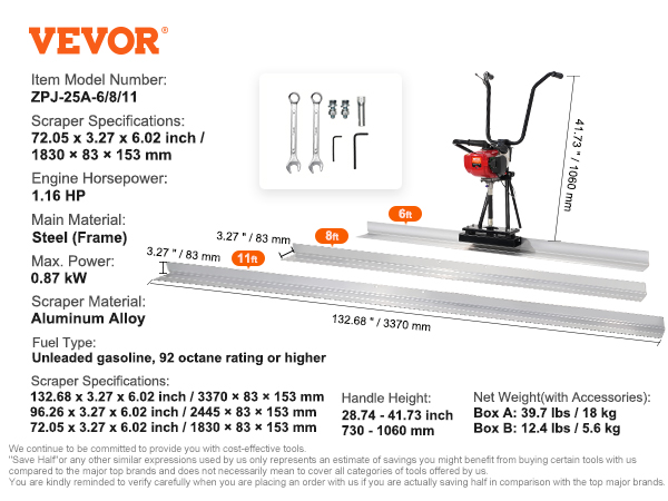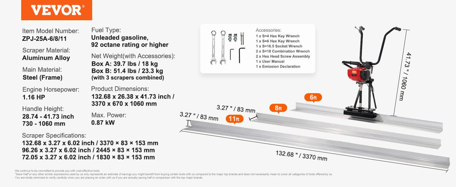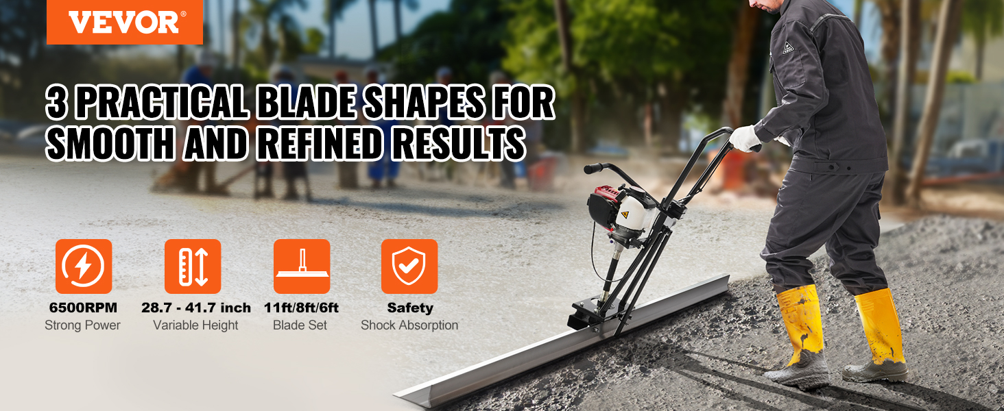 - Versatile Concrete Smoothing: With 11ft, 8ft, and 6ft options, our durable aluminum blades effortlessly tackle any construction site. Resistant to wear and rust, these 4mm thick blades offer long-lasting durability and provide a variety of options for your projects.