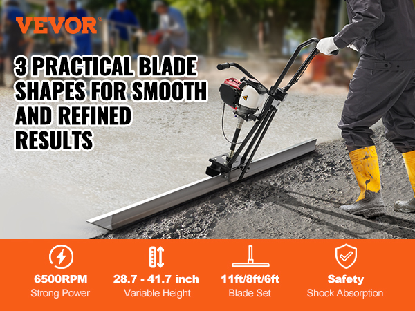 One machine, three practical blade types for effortlessly smooth finishes. Equipped with 6500RPM strong power and available in 11ft/8ft/6ft blade sets, our concrete smoother features safety shock-absorption design, making concrete smoothing a breeze and bidding farewell to tedious construction.