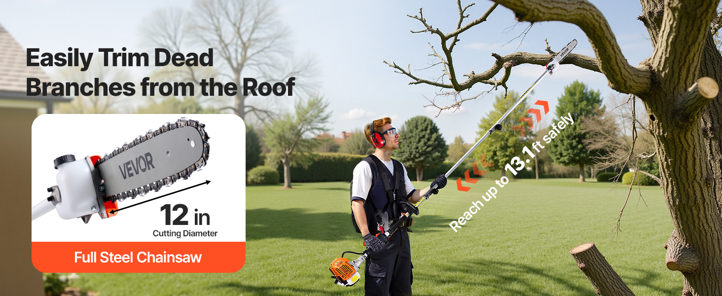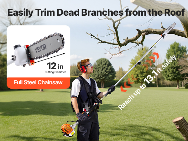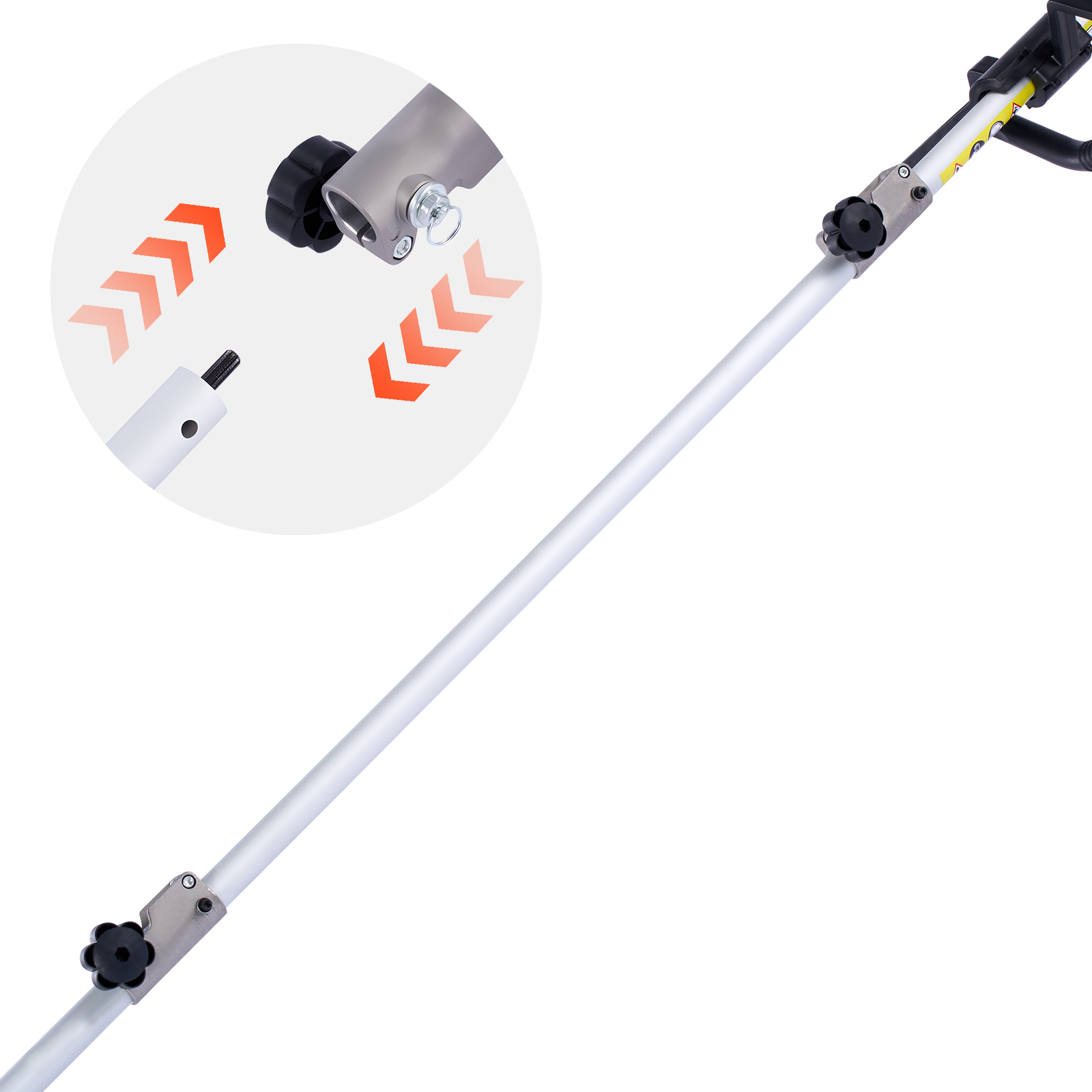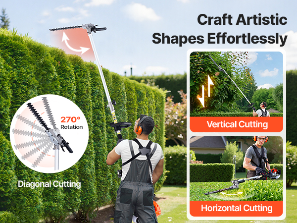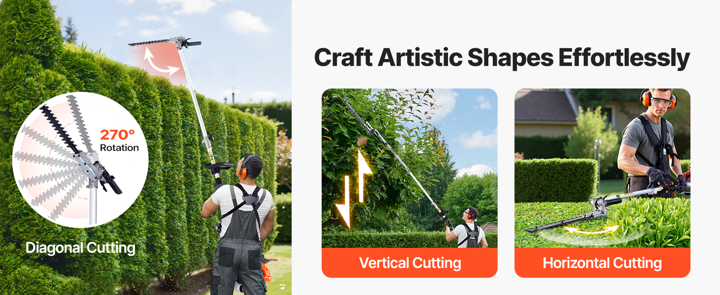 • Easy Operation: 30 in / 762 mm extension pole lets you trim high hedges from the ground without a ladder. Adjustable trimmer head allows for horizontal, diagonal, and vertical cuts with ease
