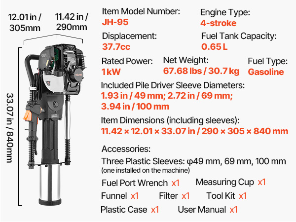 - Fast and Efficient Piling: This 37.7cc pile driver delivers rapid piling with an impact frequency of 1500–2000 BPM and 55J impact energy, enabling swift task completion and boosting overall work productivity.