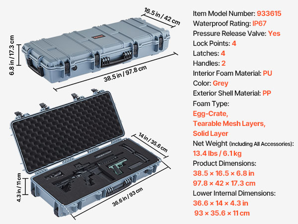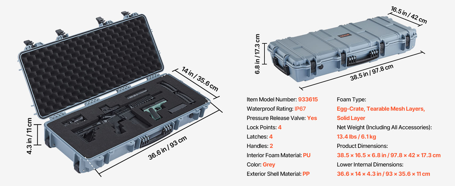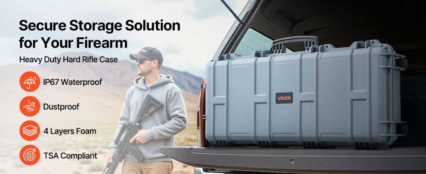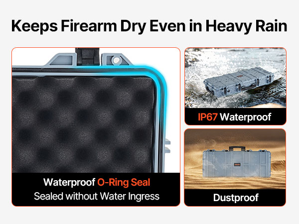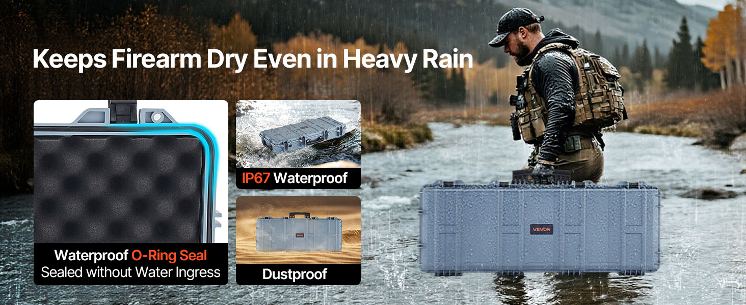 - IP67 Waterproof & Dustproof: This hard rifle case features a rugged, impact-resistant exterior with IP67 waterproof and dustproof protection, ensuring a fully sealed design that keeps water out. It safeguards your firearms against harsh weather conditions