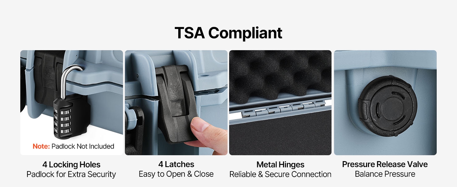 - TSA Compliant: Meet TSA standards, this rifle case is suitable for travel on airplanes, trains, and other transport. Equipped with multiple latches, you can also add padlocks to the built-in lock holes for extra security (Note: padlocks not included)