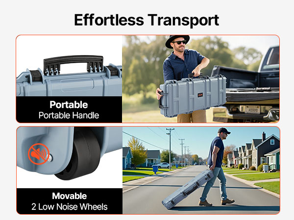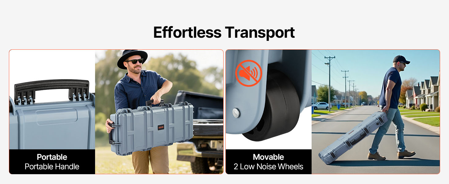 - Portable & Easy to Move: Equipped with two silent wheels, this hard gun case can be effortlessly transported in public spaces, minimizing disruption. Multiple ergonomic handles make lifting and carrying simple, offering maximum flexibility and convenience