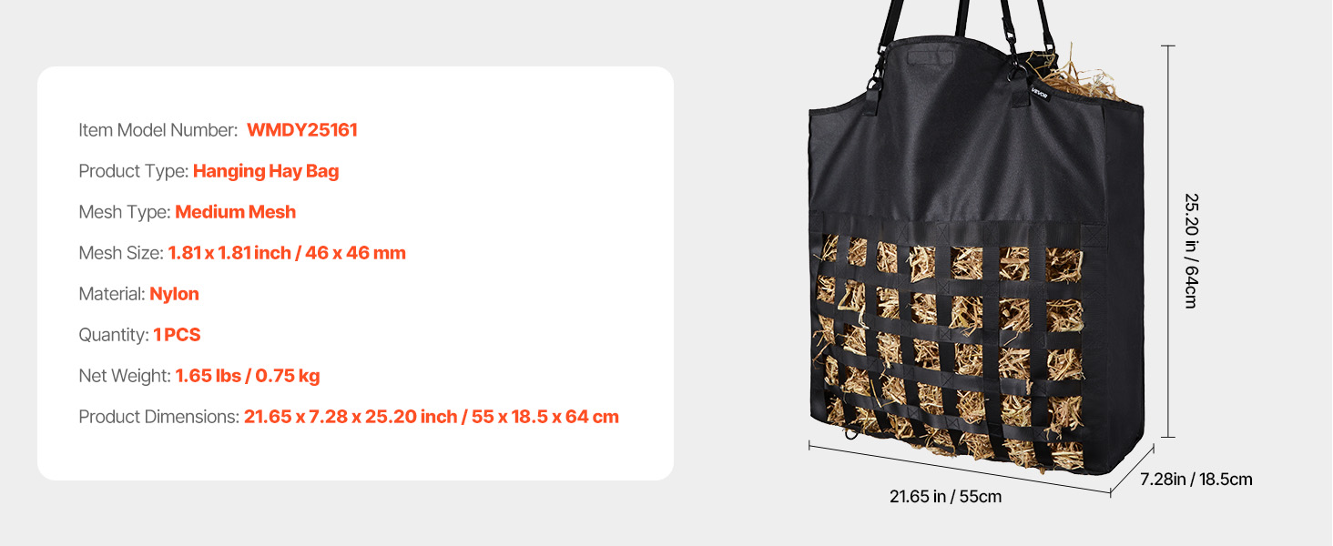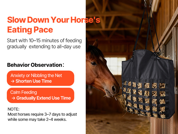 - Reduce Feed Waste: The hay bag mesh limits spillage and dropped hay, keeping feed fresh and clean. It minimizes waste and saves costs while maintaining a tidy, clean feeding area for your horses