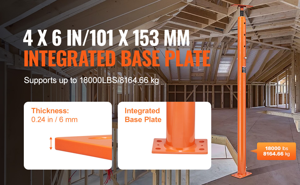 • Integrated Welded Base Plate: The adjustable floor jack's base plate is seamlessly welded to the pipe with an integrated welding process. This eliminates the need to fix the base plate to the pipe, making installation a snap without extra steps.