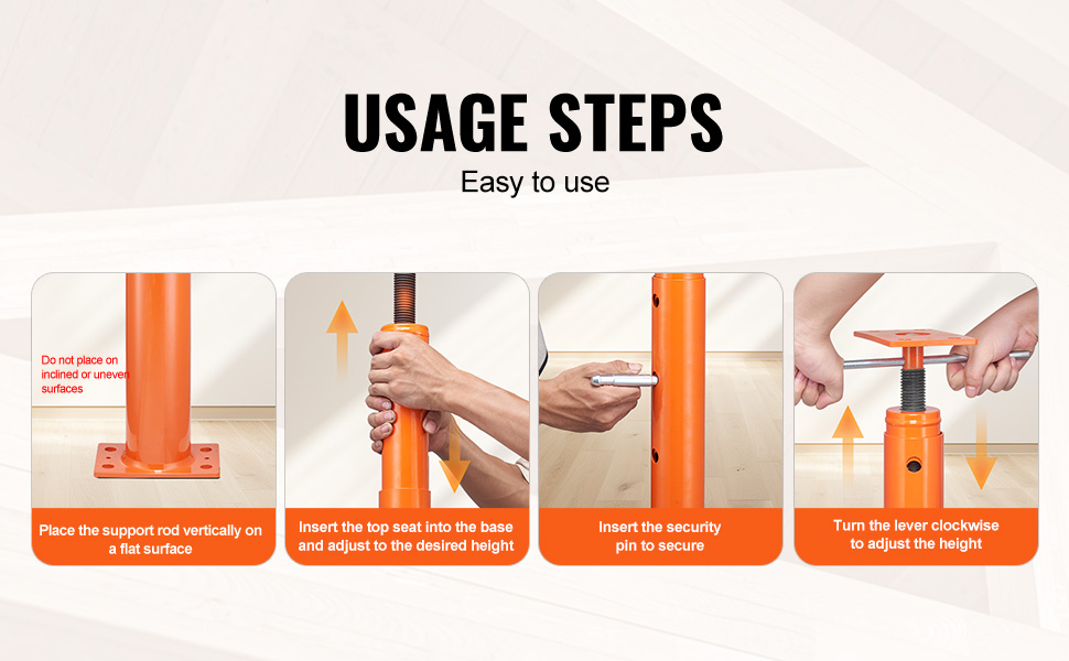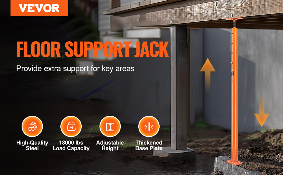 - Versatile Application: Our floor joist jack boosts an excellent load capacity and unique adjustable height design. Ideal for temporary support in various places like beams, patios, and construction—this jack does it all!